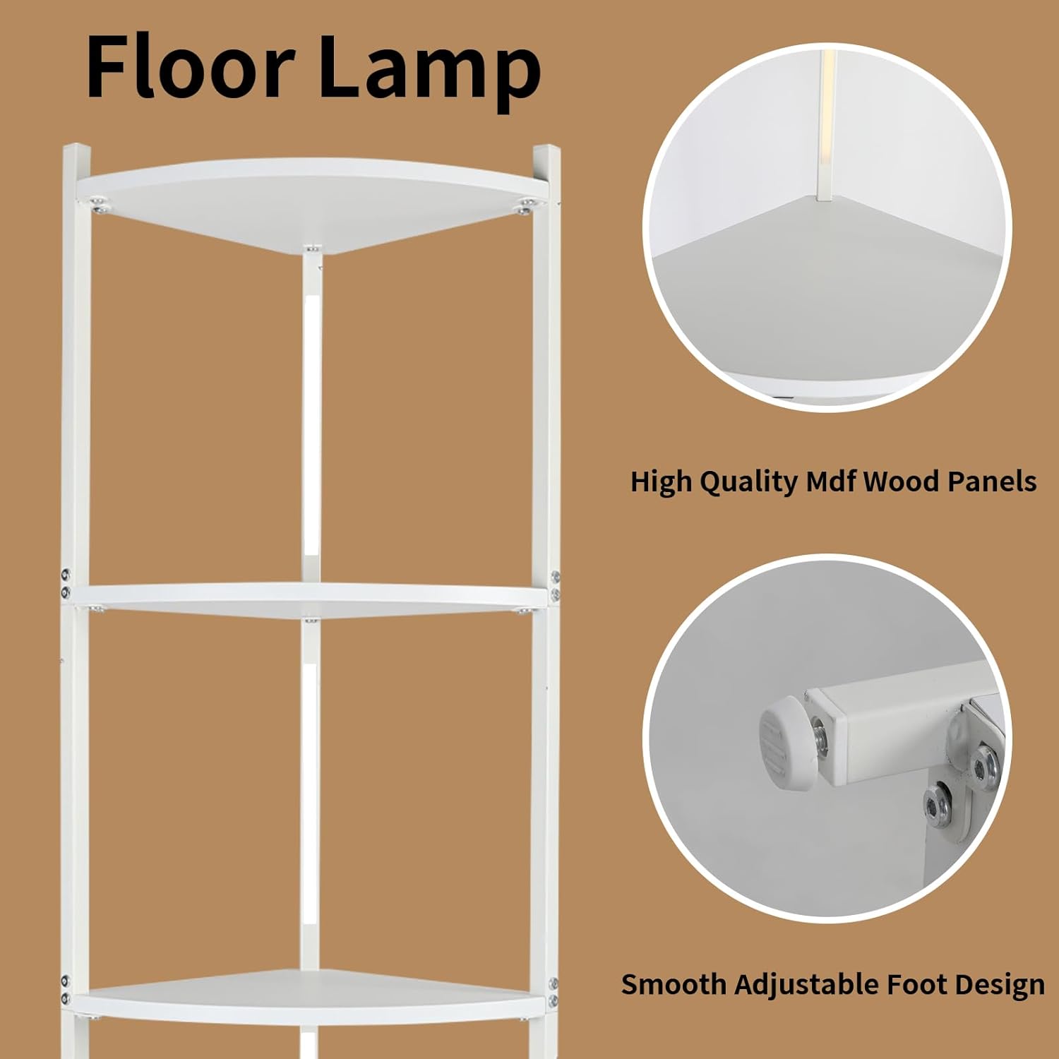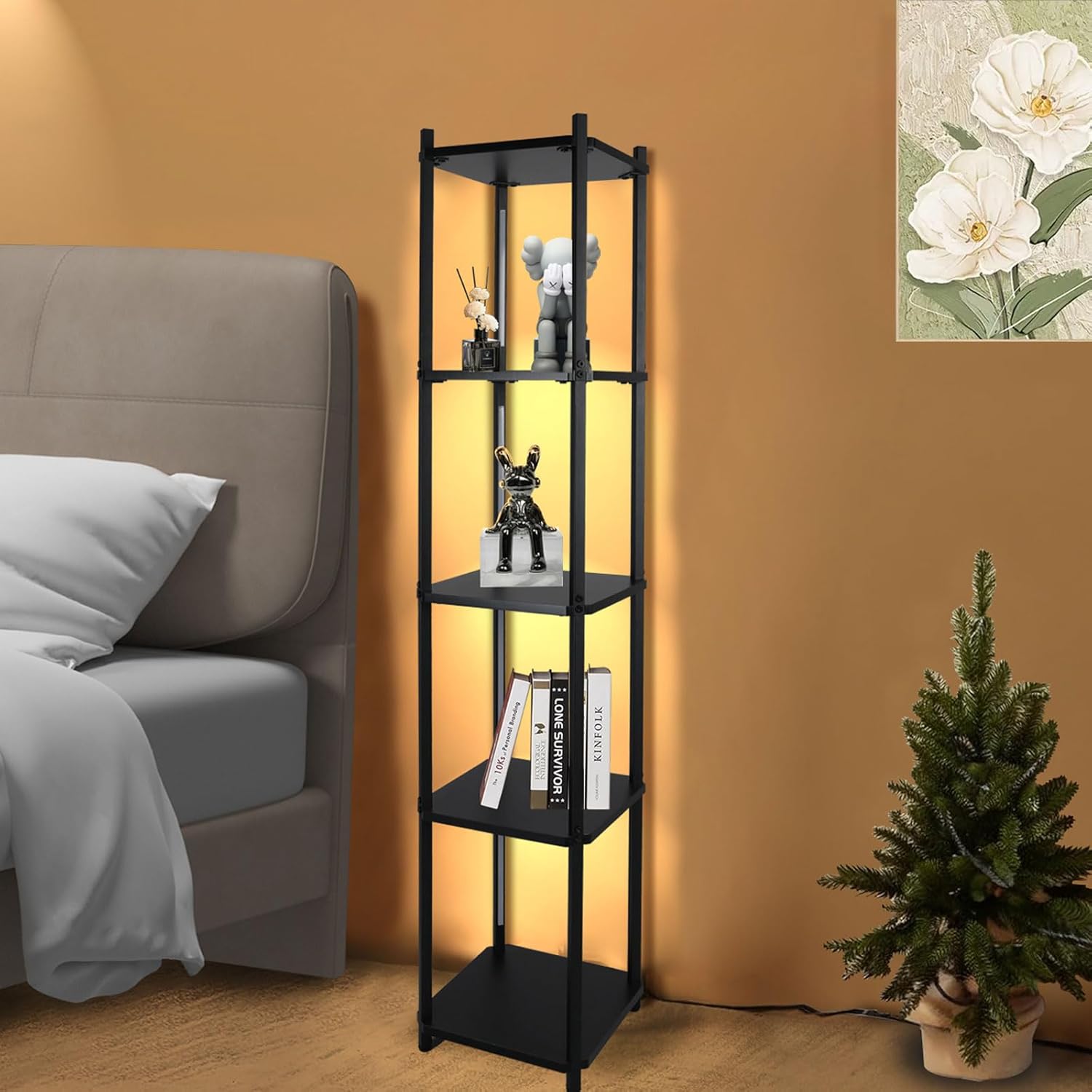 Want to design a space-saving and beautiful corner shelf for your bderoom, livingroom? Bloddream display floor lamps with 3 LED light modes, this stand shelf will bring style to your home.