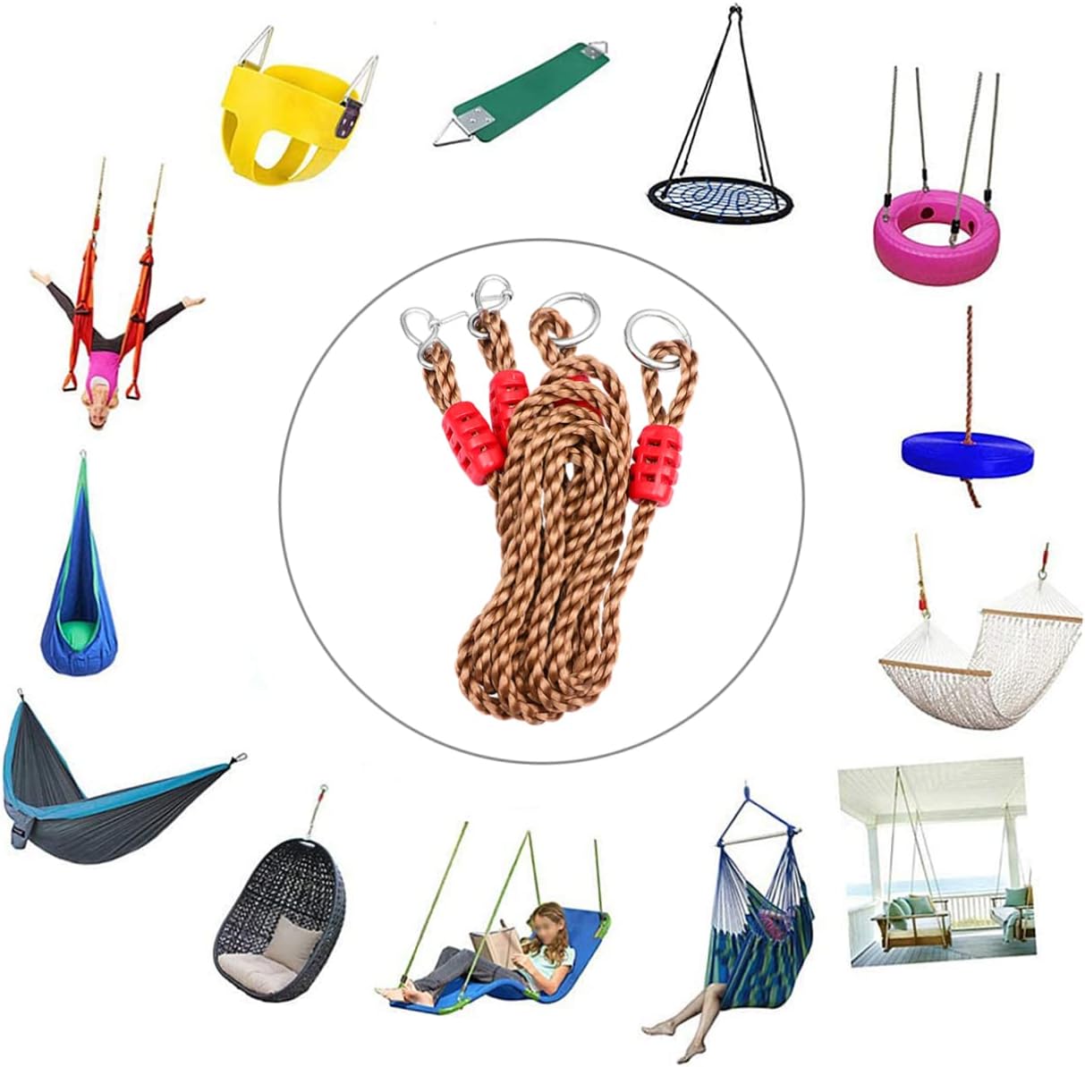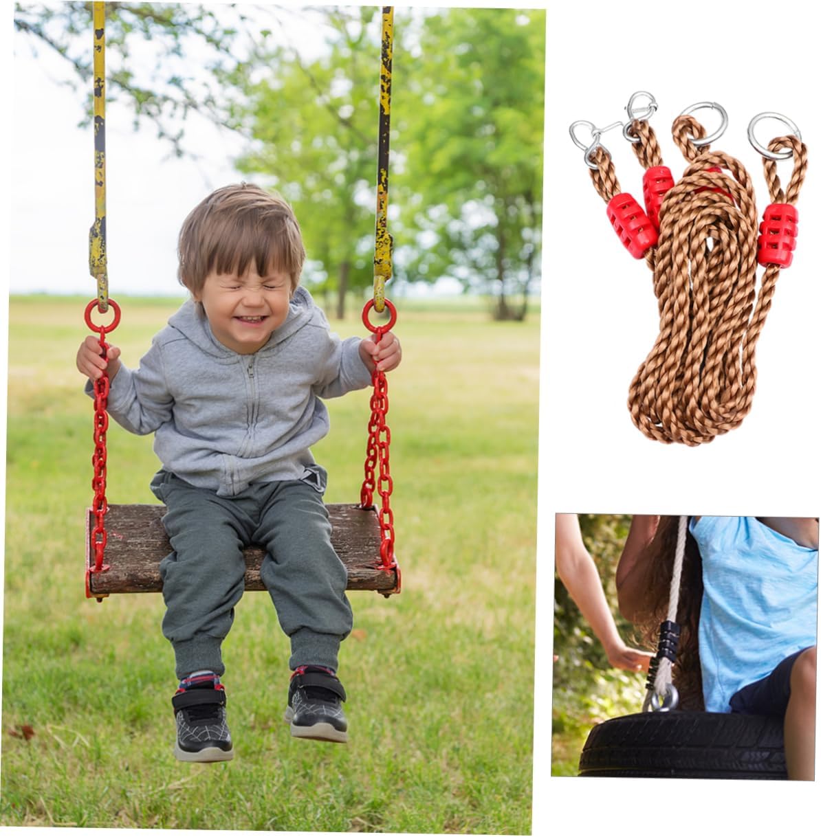 Package List 4 x PP Ropes 2 x Carabiners Features - Size: 1800.00X3.00X2.00cm/707.40X1.18X0.79in Swing Hanging Straps. - Suitable for most kinds of swings: tree swings, tire swings hammock, etc Tree Swing Hanging Kit. - Material: PE, Plastic Swing . - Color: Coffee. - You can adjust the fit size you want to fit your swings or hammocks Adjustable Swing Rope. - Help you tightly fix your string and ensure your &x27;s safety Swing Accessories. - those outdoor enthusiasts Outdoor Swing Hangers. - Adopted of material, they are strong and durable Hammock Swing .Goods DescriptionTree Swing Hanging Kit Get your family outdoors and enjoy quality time the backyard swing.Swing Accessories It is strong and durable, which can be well fitted to your rope chair, swing, swing, , etc.Swing It&x27;s easy to install and bring you and your family relaxing time.Adjustable Swing Rope This item is made of