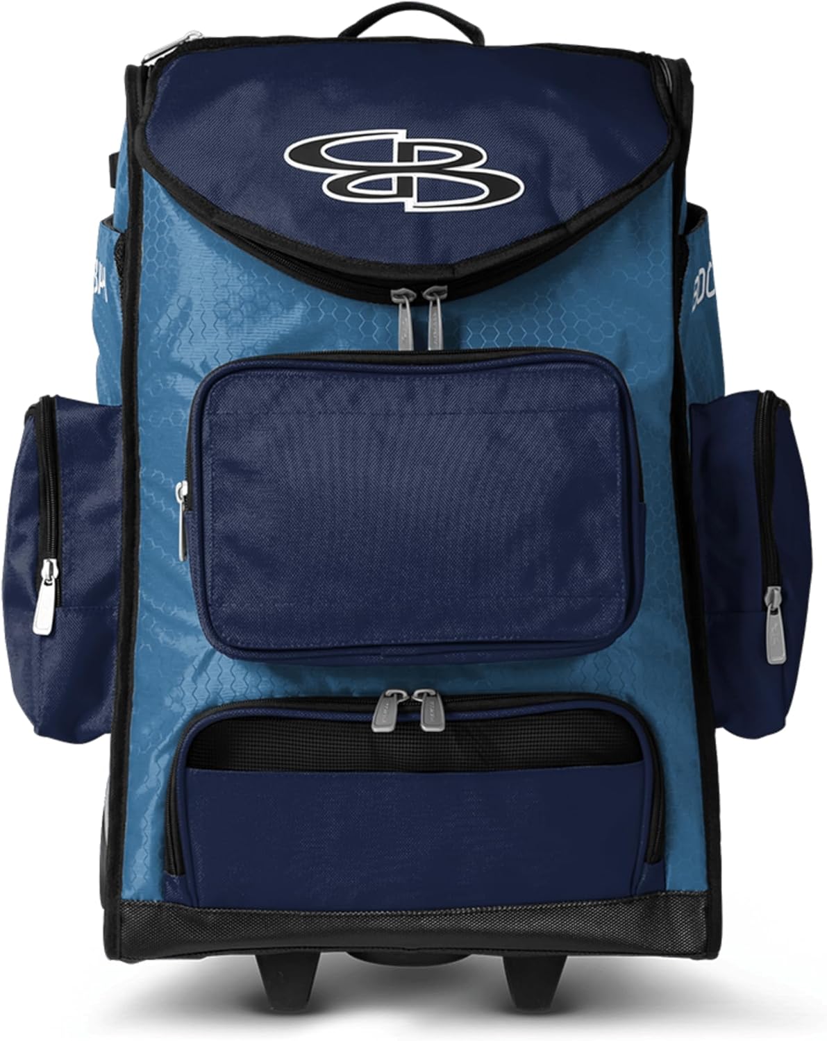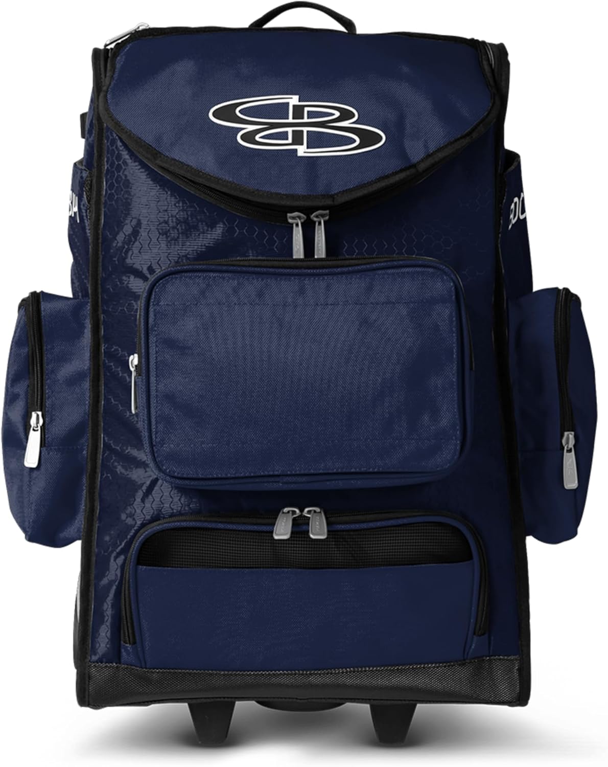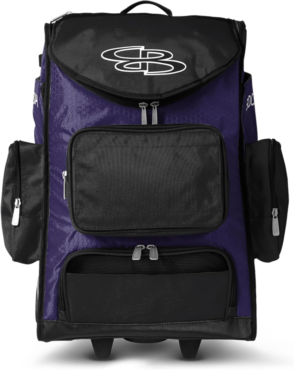Boombah Ultrapack Hybrid Rolling Bat Bag - Wheeled & Backpack Version - Multiple Color Options The Ultrapack Hybrid Rolling Bat Bag is a high-capacity baseball and softball equipment bag built for serious players who need one bag that can handle everything. With room for catcher's gear, bats, cleats, and more, this large bat bag is the go-to for programs that demand organization and durability.Ideal for competitive athletes, team travel, and consistent use. One bag that's big enough for every position, including catchers.It features a hybrid carry system with rugged wheels and adjustable backpack straps, so you can roll it or wear it depending on the day. The reinforced base keeps the bag upright and stable, while the durable polyester shell stands up to long seasons of travel and heavy gear. This wheeled bag includes two reinforced, fully-lined bat sleeves, one on each side. Each sleeve can hold up to two bats or one bat and one shin guard. Water bottle pockets on each side provide even more storage flexibility. The ventilated shoe compartment and mesh organizers help keep everything separated and ready to go.A removable embroidery flap allows for team customization with player names, numbers, or logos. Whether you're gearing up for tournaments or organizing the dugout, the Ultrapack Hybrid brings smart storage and serious flexibility to your season.Available here in your favorite Team's Colors, this classic design lets every squad show their pride in bold shades that unify the lineup. Strong. Classic. Team-Ready.Please tuck the backpack straps into their pocket when rolling the bag to prevent damage.About Boombah:Boombah baseball and softball products are part of our huge family of sporting gear, apparel and accessories. We design and manufacturer our own line of high quality sports equipment and gear for the sports you love.