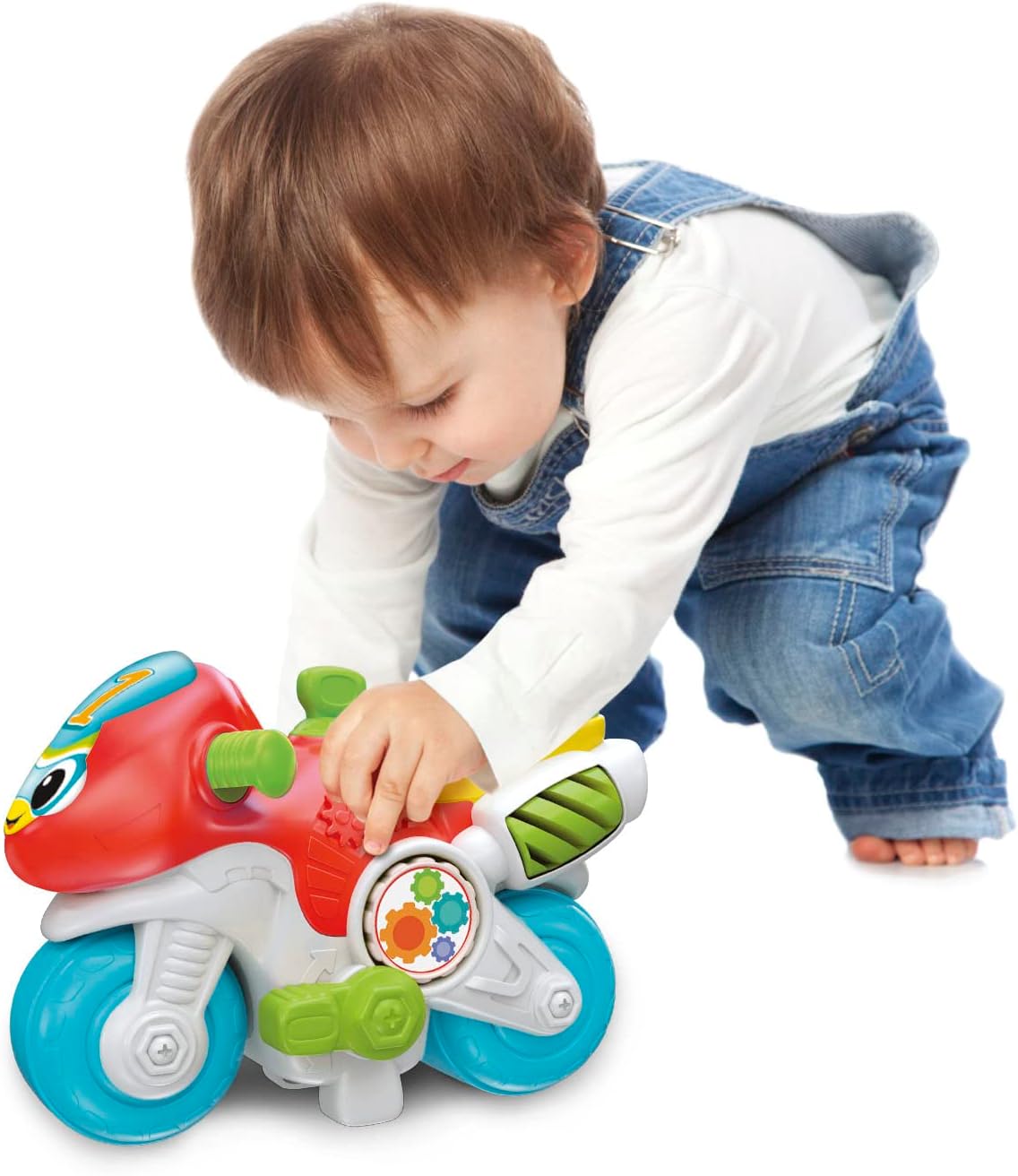 A very colorful motorcycle that is also a fun electronic activity center. Support your child in learning letters and numbers thanks to the interactive keys: the press chest and the key to turn. Stimulates dexterity, visual and auditory perception, and supports the development and understanding of the cause-effect relationship. Mechanical and interactive elements help refine fine motor skills and hand-eye coordination. Educational content is in Italian and English.