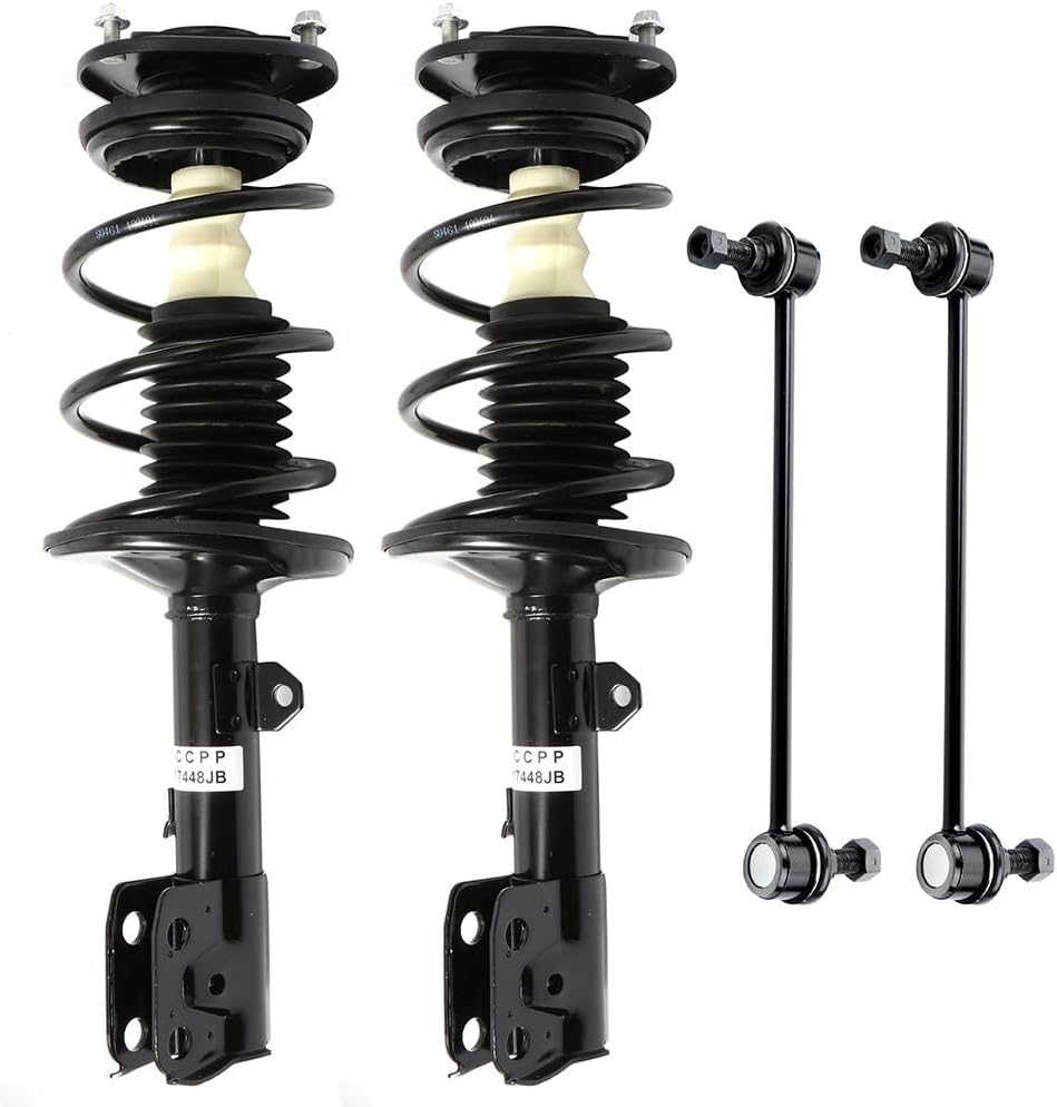 FITMENT VEHICLES:2009-2011 for Toyota Corolla Base Sedan 4-Door 2009-2013 for Toyota Corolla CE Sedan 4-Door 2012-2013 for Toyota Corolla L Sedan 4-Door 2009-2013 for Toyota Corolla LE Sedan 4-Door 2009-2013 for Toyota Corolla S Sedan 4-Door 2009-2013 for Toyota Corolla XLE Sedan 4-Door 2011-2013 for Toyota Matrix Base Wagon 4-Door KIT INCLUDES:2PCS Front Complete Struts Assembly2PCS Stabilizer Bar Link