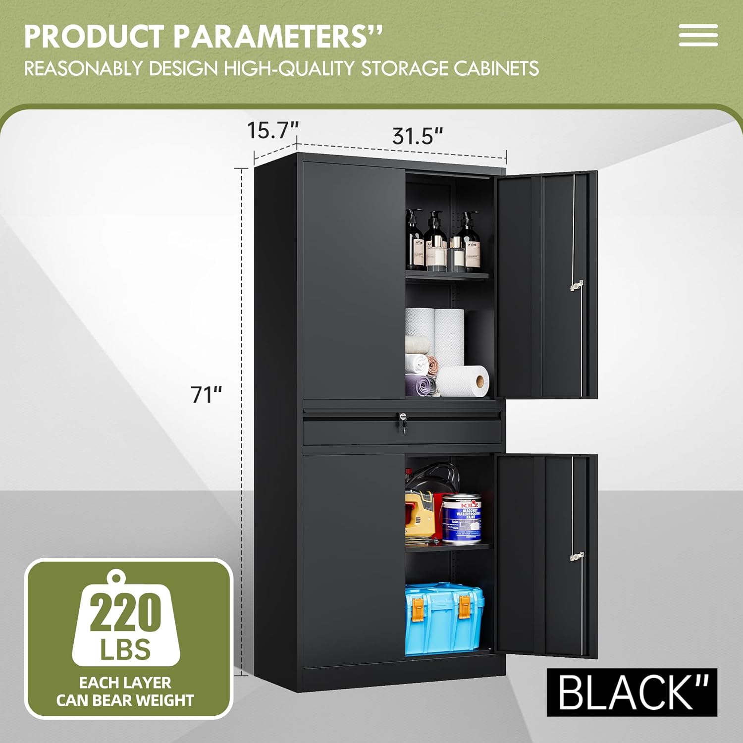 | Additional Features | Lockable,Drawer,Adjustable shelve |