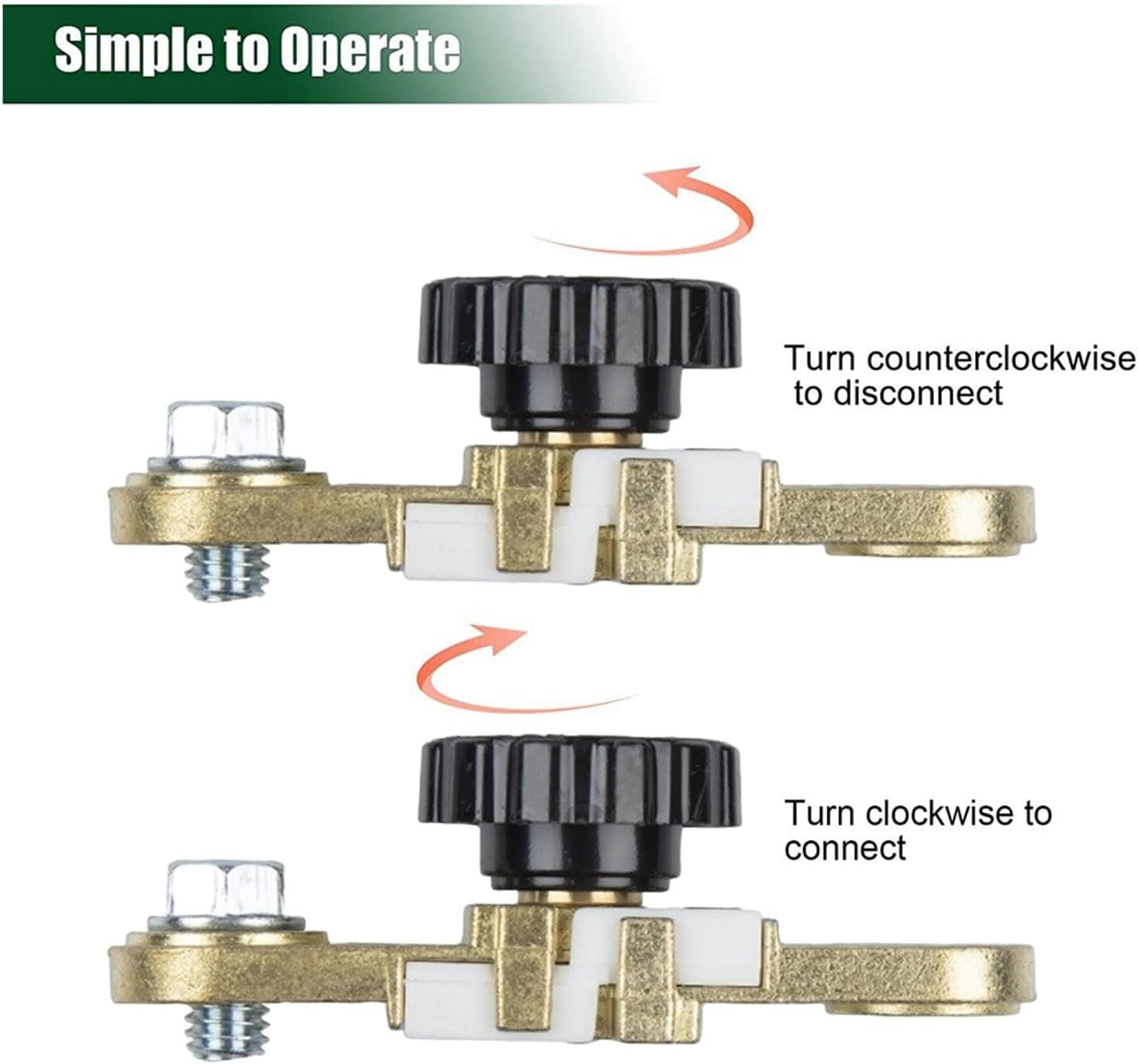 Feature:1. Power Protection: The car battery terminal link quick cut-off switch acts as a for your power source, preventing unwanted battery drain and avoiding short circuits. This ensures the longevity and healthy functioning of your automobile battery.2. Direct Connection: The rotary disconnect isolator directly connects to the battery terminal and can be promptly cut off. This feature is particularly useful when storing and repairing cars and trucks, preventing battery exhaustion.3. Enhanced Safety: Using the battery cut-off switch helps cut off power in racing cars and prevent fires, offering an additional layer of safety and peace of mind for automobile owners and operators.4. Battery Life Extension: By preventing unnecessary power drain, the anti-leakage switch extends the lifespan of your vehicle's battery. This saves you from frequent battery replacements and related costs.5. Durable Materials: The car side post battery disconnect switch is manufactured from zinc alloy plated with brass, rendering it rust-resistant and corrosion-resistant. This ensures the product's durability and long-term performance.Specification:Body material: zinc alloy plated brassInstallation aperture: 10mmColour: As shownRated current: 100AInstantaneous current: 300AInstallation position;Battery negative line Product Size: 102.00x33.00x25.00mm/4.02x1.3x0.98inchWeight: 150gApplicable;Applicable so 12V/24V battery (caravan, trailer, car, motorbike, lorry, boat, etc.)1 x Battery Terminal Link Quick Cut-off Switch
