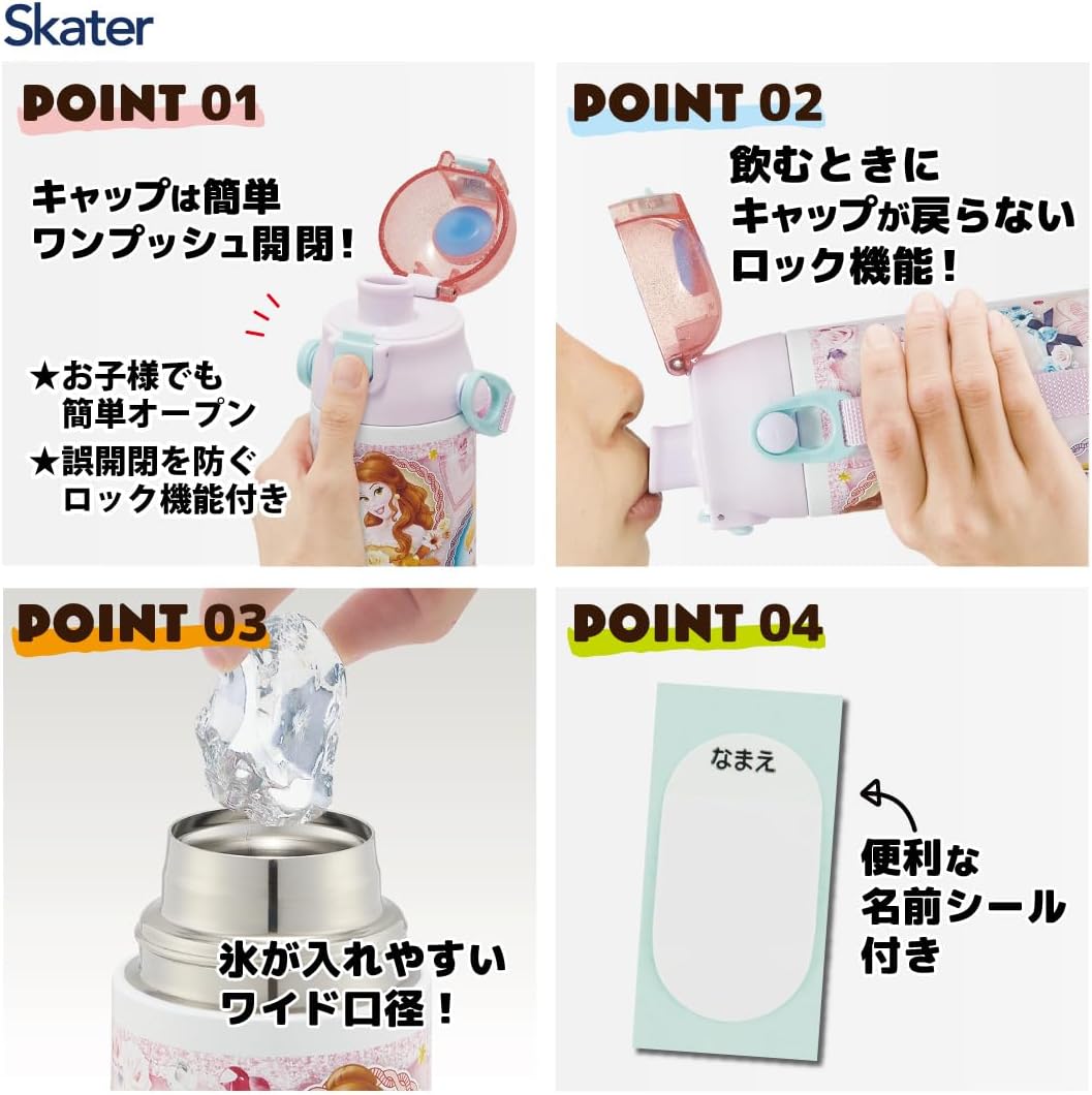 This stainless steel water bottle is not too big, just the right size for you. Suitable for children, high school and middle school students. It is dangerous to fill with hot beverages, so please use it only for cold water. Direct drinking cap unit Features a locking function to prevent the cap from opening and closing due to malfunction Easy to open with one push Shoulder strap for shoulder, nameplate Wide diameter for easy insertion of ice Vacuum double wall construction increases cold retention, lightweight and compact stainless steel water bottle.