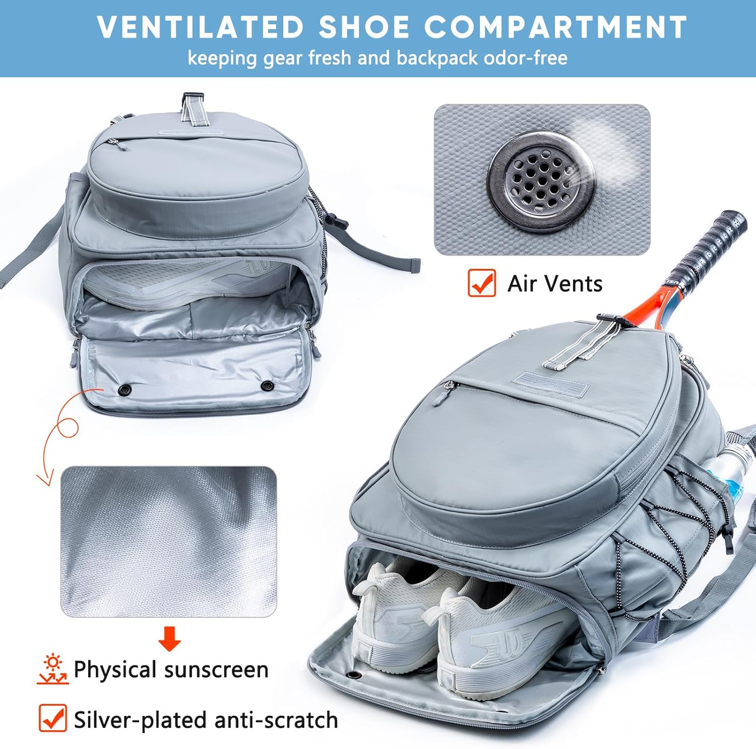 SPORJET Tennis Racket Backpack - Quilted Tennis Rackets Case Water-Resistant for Kids, Women, Men