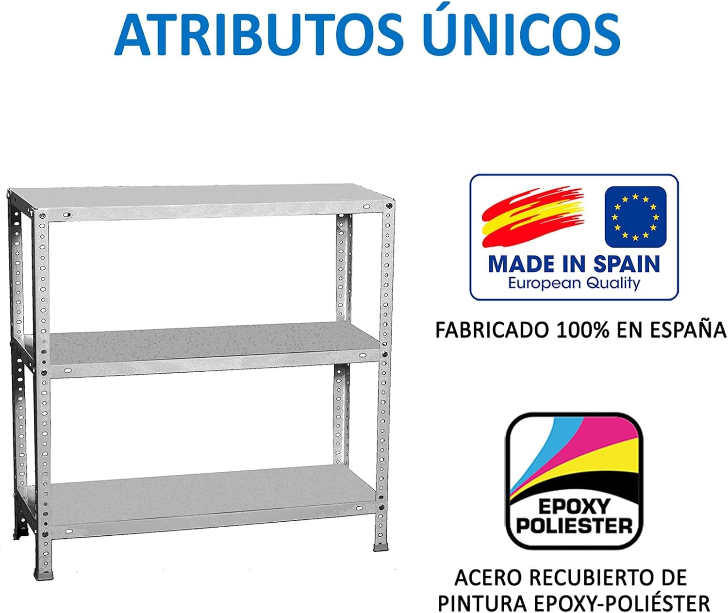 Metal shelving – Supports up to 75 kg of bending point per shelf. This marks the safe load limit, ensuring that the structure remains stable and sturdy without permanent deformation. LARGE STORAGE SPACE – Dimensions of use: 1000 x 810 x 410 mm. Each shelf can be assembled freely. Quality – The steel used complies with EN 10130 regulations is DC01. The trays have thicknesses of 0.6 mm and the profiles of S325 steel with a thickness of 1.5 mm, both with a coating on the Z275 galvanized parts. Made in Spain. UPDATED INSTRUCTIONS - Improved instructions explained step by step and explaining video.